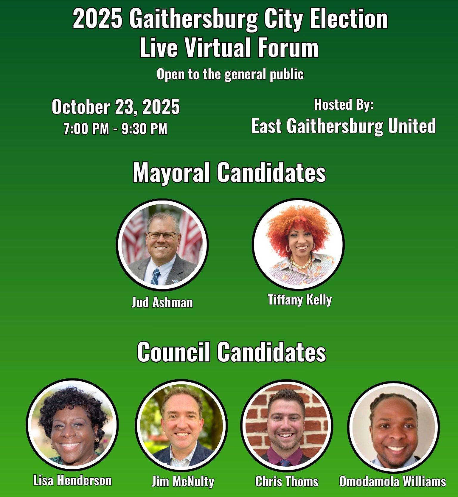 If you have questions about this event, please email info@eastgaithersburgunited.com.